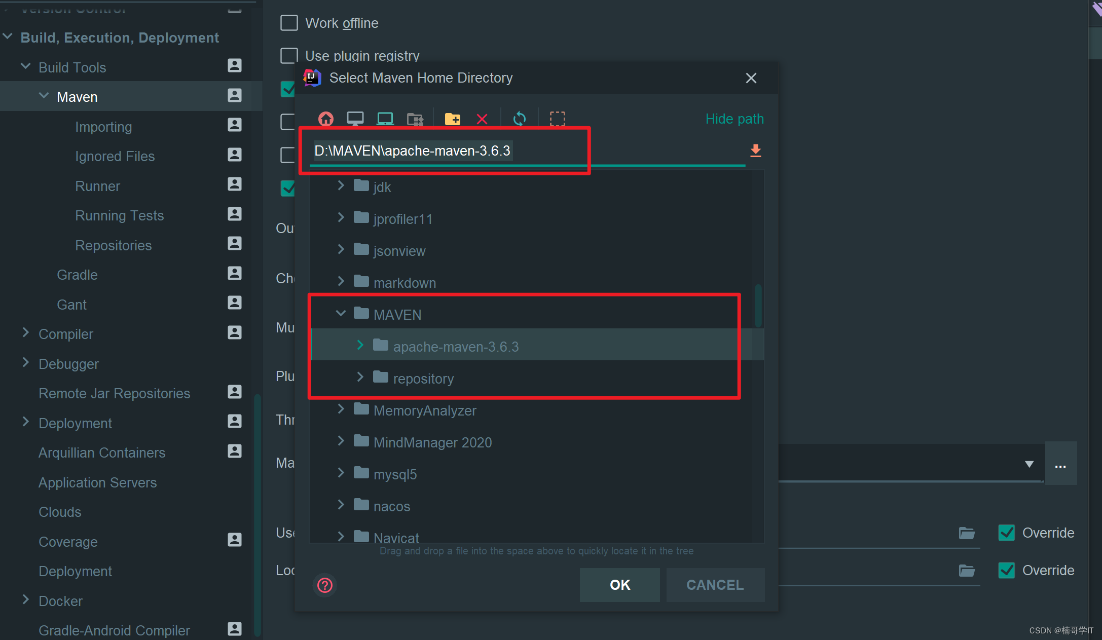 依次点击下边的选项框。设置路径,这里的路径就是你之前解压maven的那个文件所在路径