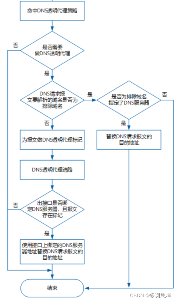 DNS透明代理就解决了此问题,通过制定DNS透明代理策略,对命中策略的DNS请求报文修改其目的地址(即将DNS请求服务器的地址更换到ISP2),然后上网流量就可以通过不同的ISP链路转发,充分利用了所用链路资源