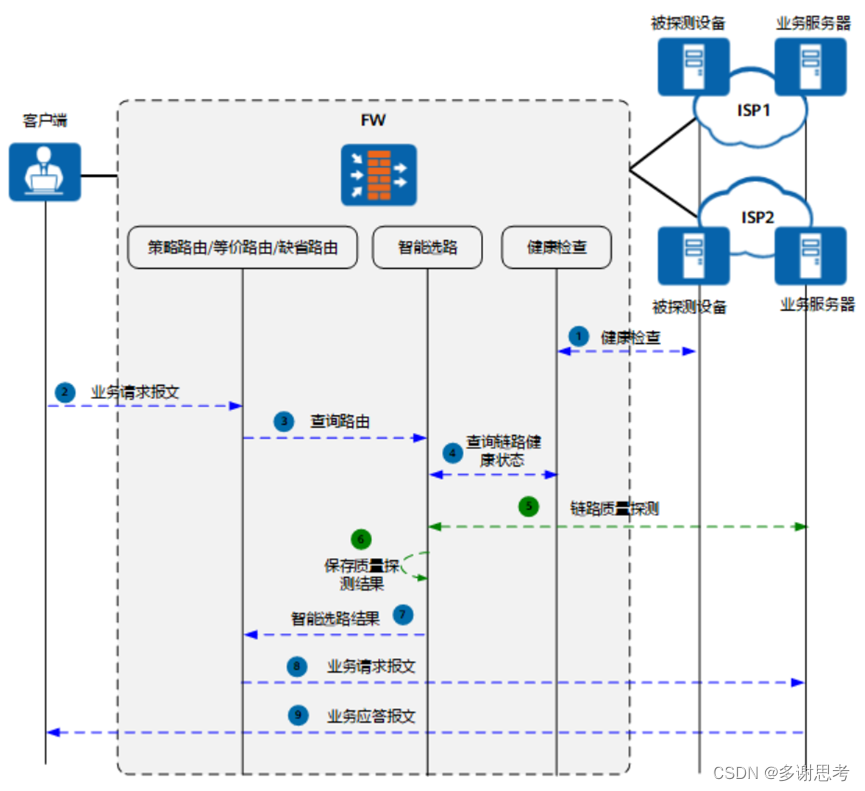 - 当流量命中策略路由,策略路由有多个出接口时,根据链路带宽、权重、优先级或自动探测到目的地的链路质量,动态选择出接口。