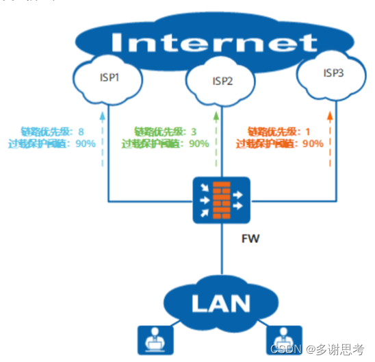 - 负载分担:优先使用主接口转发,当流量超过保护阈值后使用其他链路传输流量