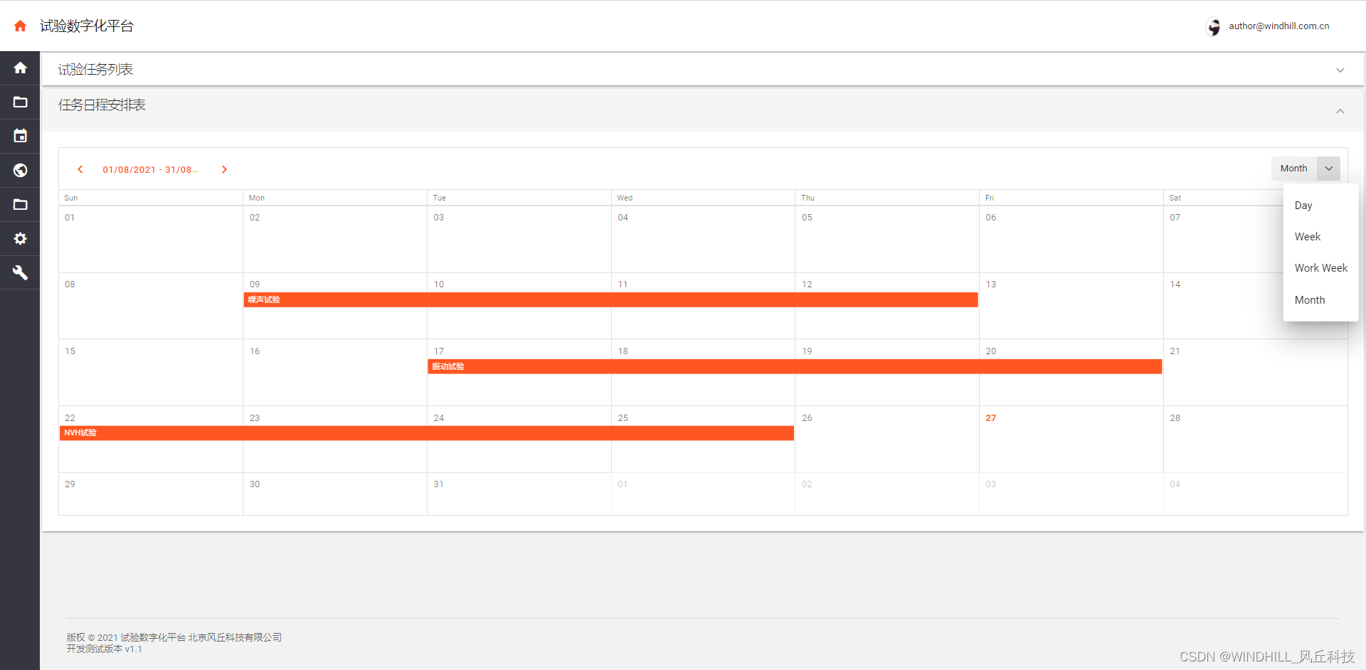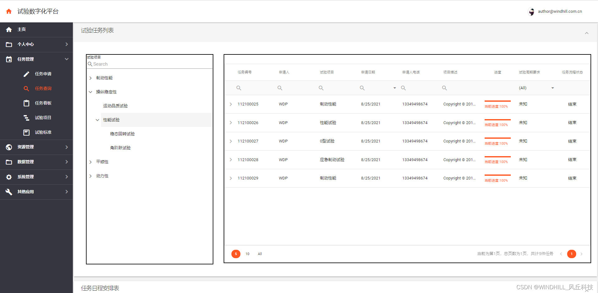 支持任务进度查看、试验项目统计,以及直观了解任务进展情况。可实现对试验任务的在线追踪,并且可实时展现任务所处阶段和进度,还可对任务到期、延期的情况及时给出预警提示。提供试验任务日程安排表,并支持以多种形式展示安排的试验任务情况,避免了日程冲突。