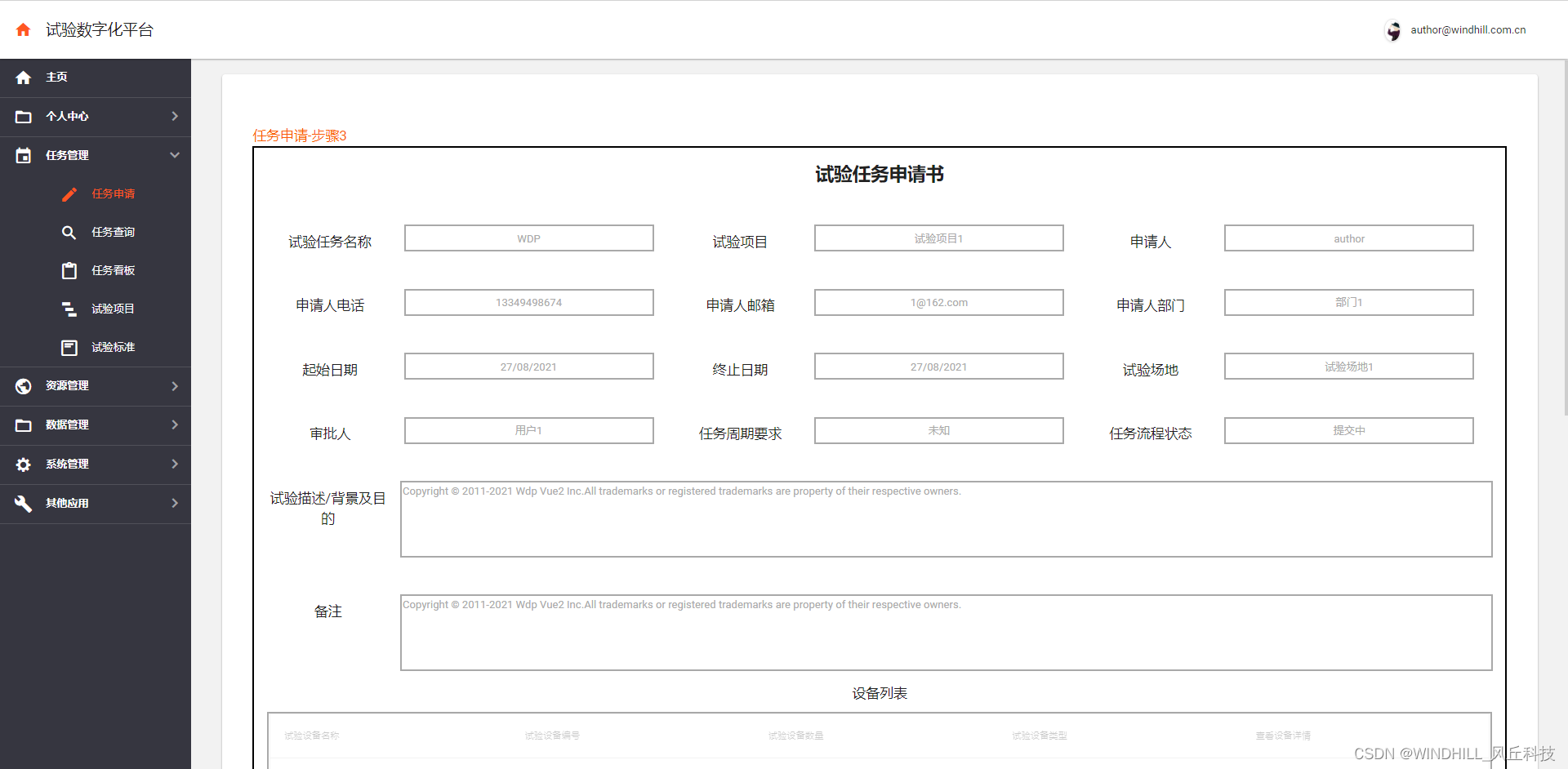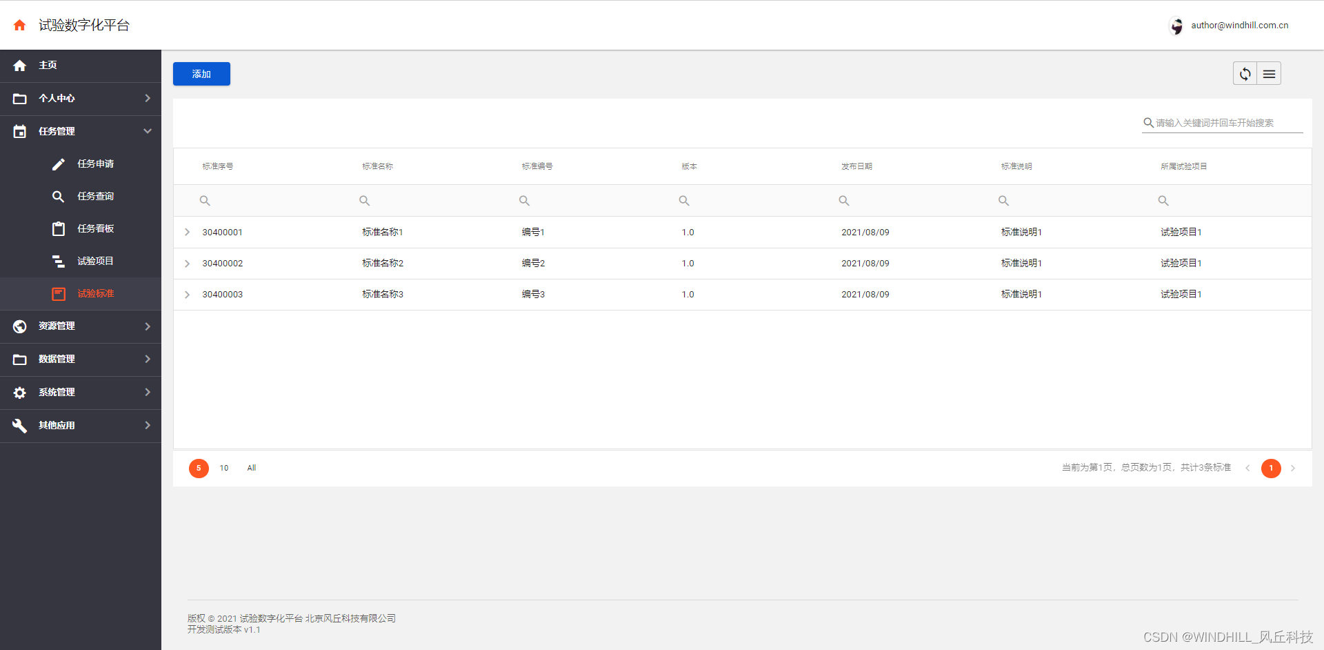 提供试验任务申请书创建向导,包括试验定义、任务信息、资源配置、试验标准等,规范了试验任务;实现了试验项目、试验标准的统一管理,并可将试验相关信息进行关联。