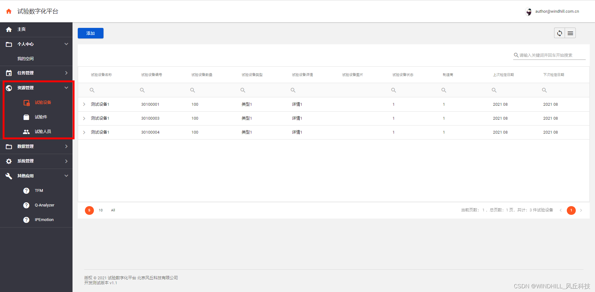 提供对试验设备、试验件、试验人员等资源的综合管理,涵盖各项管理信息与文档资料,记录并跟踪各项资源的流转、检修状态。可实现对试验资源的合理化分配和规范化管理,并且可提高设备合理利用率、减少资源冲突、合理安排各项资源使用计划。