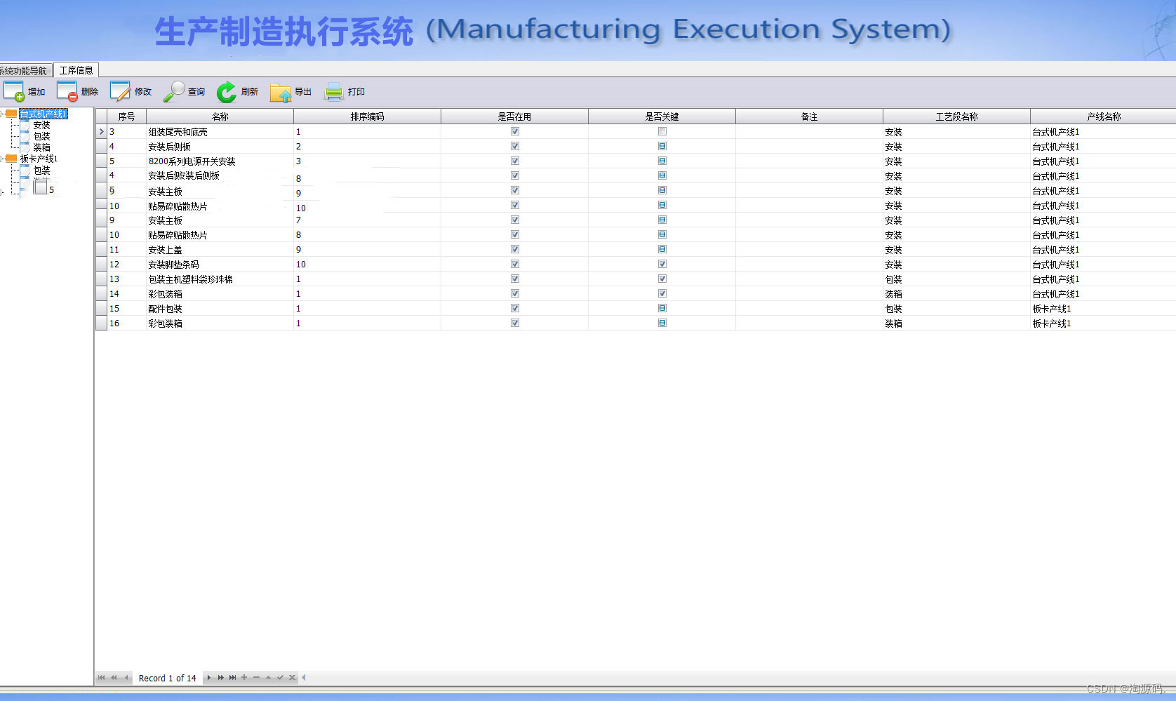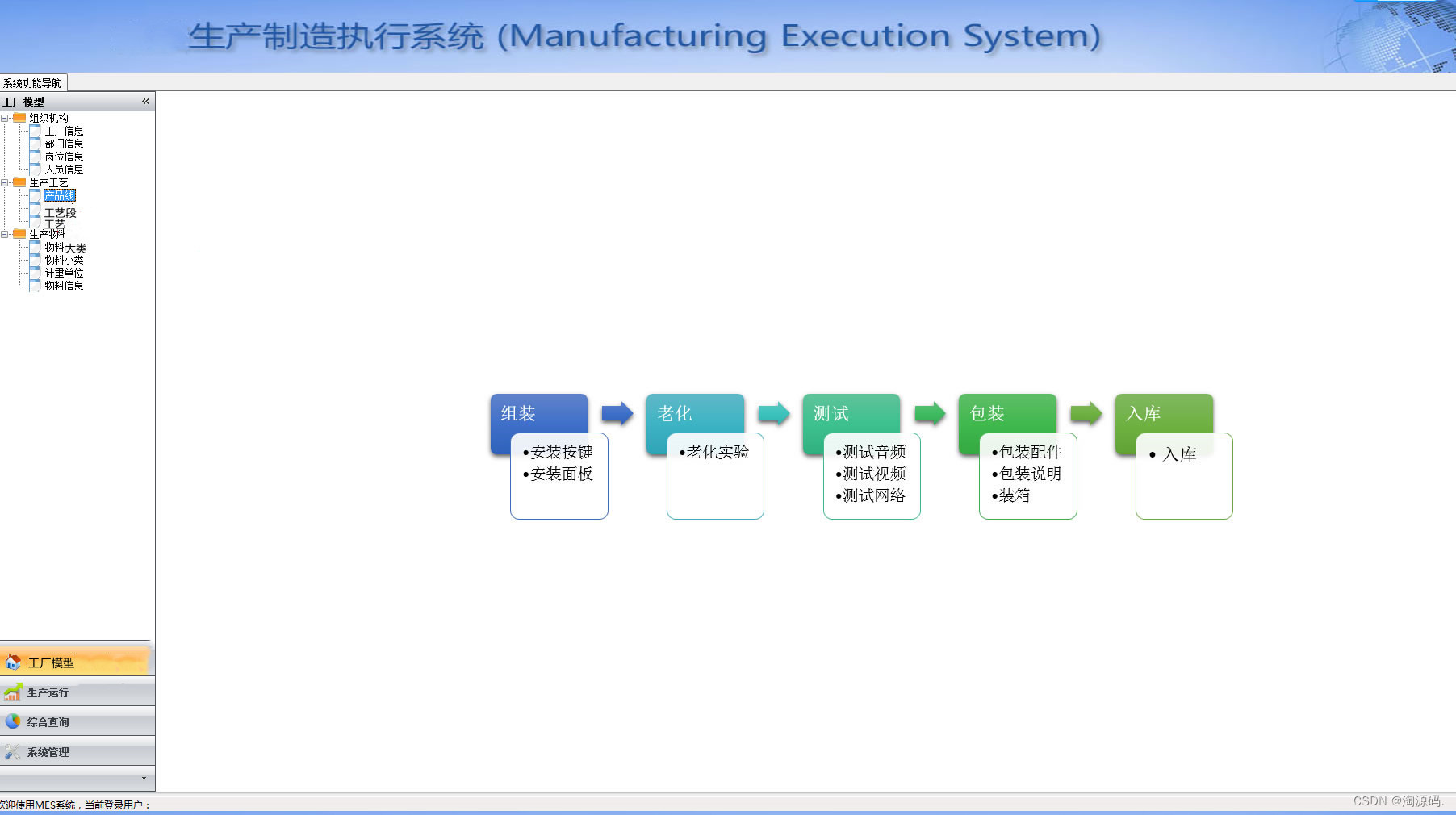 MES生产制造执行系统可以划分生产线为:产线-工艺段-工序 三段式,并且动态可配置, 可以使得系统满足产线流程的变化。即使产线流程更改只需少量改动就能很好的适应。整体功能比较完善。