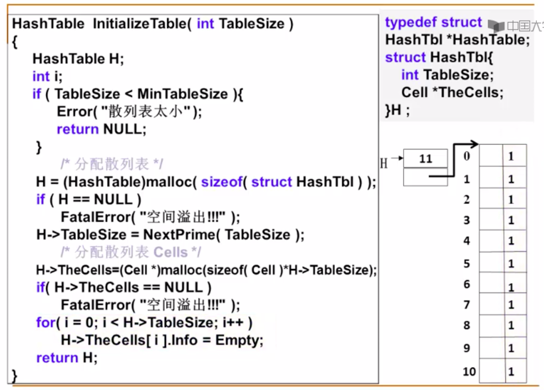 H->Cells = (Cell *)malloc(H->TableSize*sizeof(Cell));