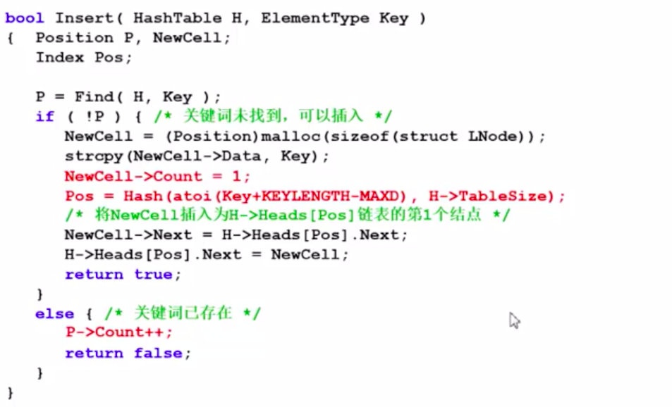 if ( !P ) { /* 关键词未找到,可以插入 */