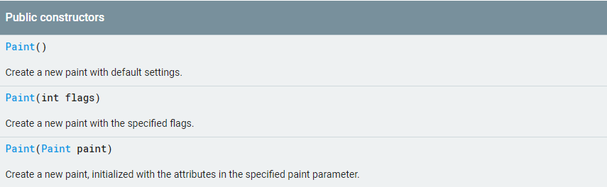 就是这样,你没看错,这里就多了一句话,上面用注释标出来了,现在来讲下上面说的根据构造函数来创建Paint对象的方法.