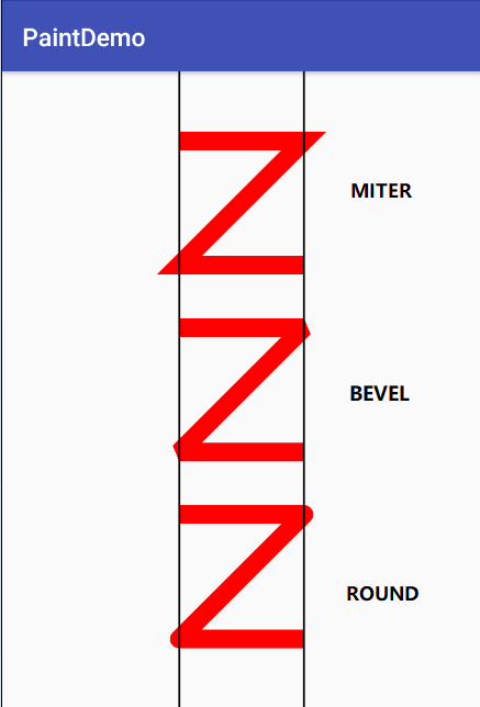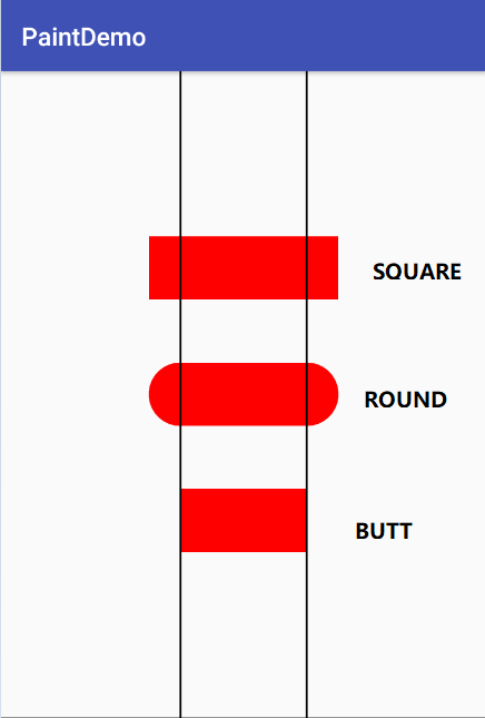 我们画的是半径为100的圆,我故意把边的粗细改为30,让效果更佳明显,通过辅助线,可以看的很明显了吧~我就不多说什么了,下面我在演示Cap和Join的时候也会直接上对比图,这里是带你慢慢理解,最后还是要放在一起对比,如果你想一一尝试的话自己去尝试,很简单,我就直接给对比图了~请理解,不懂的话联系我~