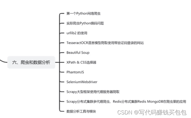 这一阶段主要掌握掌握各类HTTP调试器用法,可加q群1005611884理解网络爬虫编写的基本套路,了解网络爬虫编写的各种陷阱,能够应对动态网站爬取,能够应对带有验证码的网站,能够应对需要浏览器渲染的网站,能够应对分布式抓取需要,能够应对反爬虫技术,能够应对无界面抓取,能够利用爬虫平台。