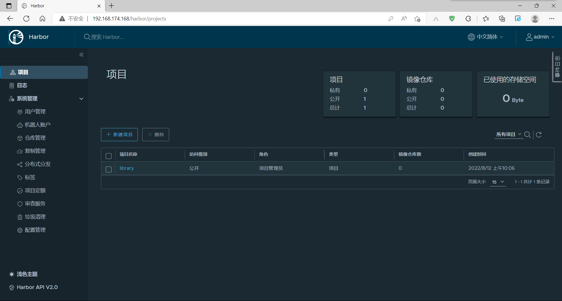 //默认用户名为admin 密码为Harbor12345