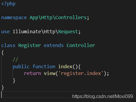 在public/resourses/views文件夹下面新建register文件夹,再在register文件夹里面新建index.blade.php文件