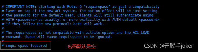 # 当在Redis实例中开启了requirepass foobared 授权密码 这样所有连接Redis实例的客户端都要提供密码