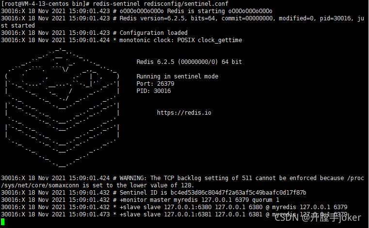 sentinel monitor mymaster 127.0.0.1 6379 1