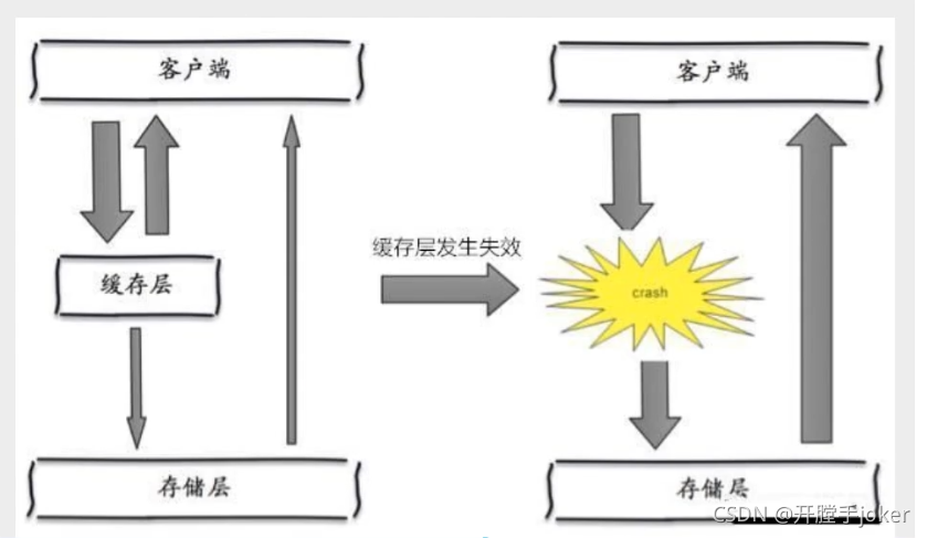 这里需要注意和缓存击穿的区别,缓存击穿,堤指一个key非常热点,在不停的扛着大并发,大并发集中对这一个点进行访问,当这个key在失效的瞬间,持续的大并发就穿破缓存,直接请求数据库,就像在一个屏障上凿开了一个洞。