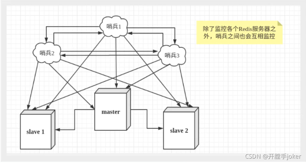 - 哨兵模式就是主从模式的升级,手动到自动,更加健壮
