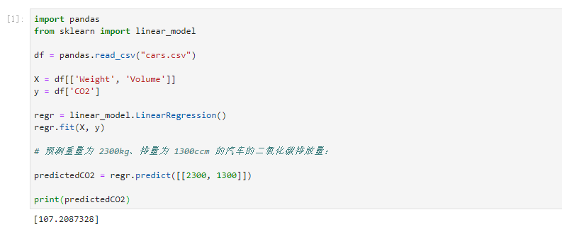 预测出配备 1.3 升发动机,重量为 2300 千克的汽车,每行驶 1 公里,就会释放约 107 克二氧化碳。