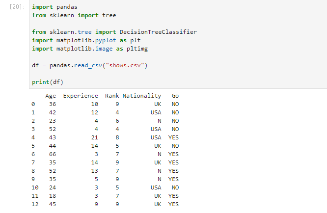 决策树使用您先前的决策来计算您是否愿意去看喜剧演员的几率。