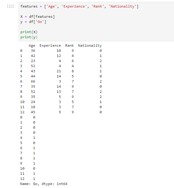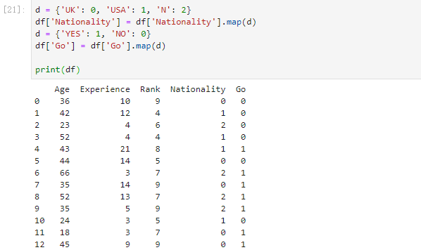 我们必须将非数字列 “Nationality” 和 “Go” 转换为数值。