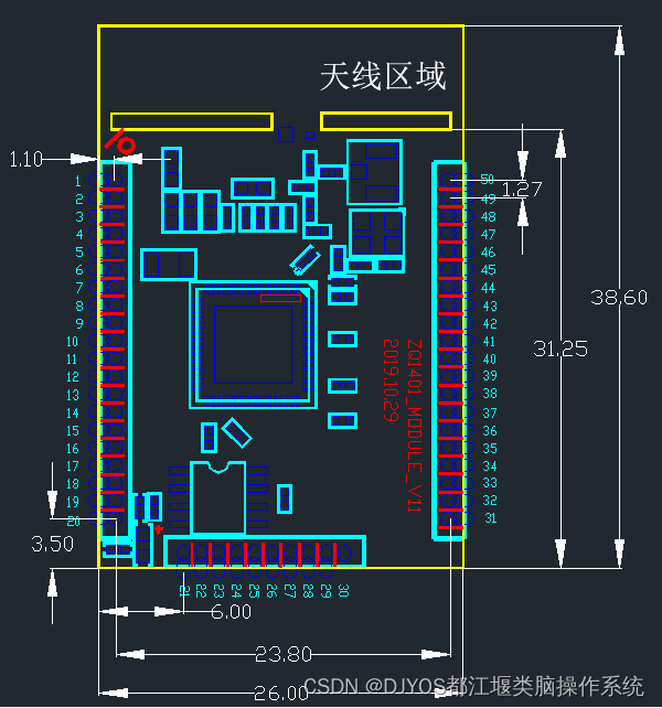3.1.2 不带板载天线,带IPEX天线扣,可做到: 31.25mm*26.00mm (带板载天线)