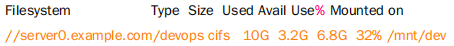 //server0.example.com/devops /mnt/dev cifs username=kenji,password=atenorth,multiuser,sec=ntlmssp,_netdev 0 0 [root@desktop0 ~]# umount /mnt/dev //卸载此共享