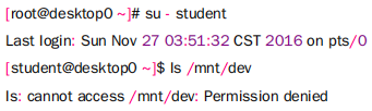 切换到普通用户student验证,无权访问挂载点/mnt/dev: