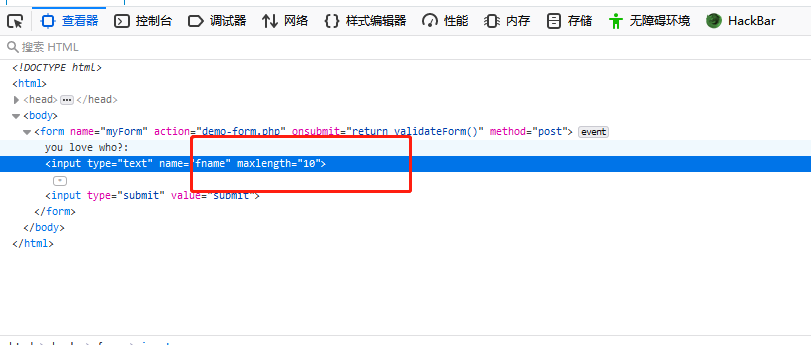 点开查看器,点开 form表单,把maxlength 最大值更改到10.此刻就可以在对话框中输入答案,得到flag。