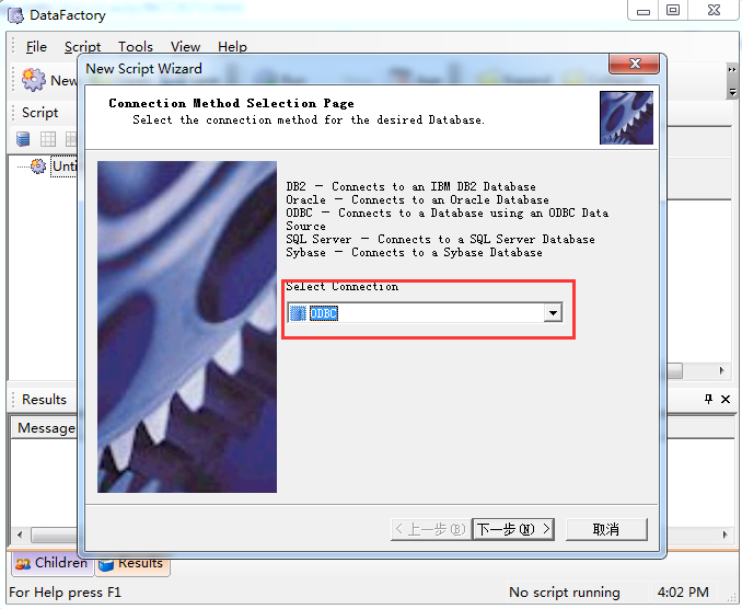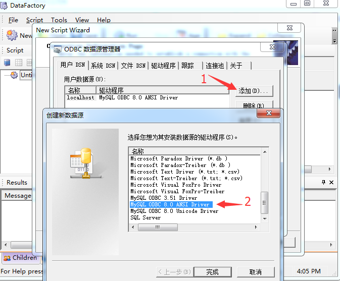 a. 启动DataFactory,通过ODBC连接MySQL数据库,如图所示: