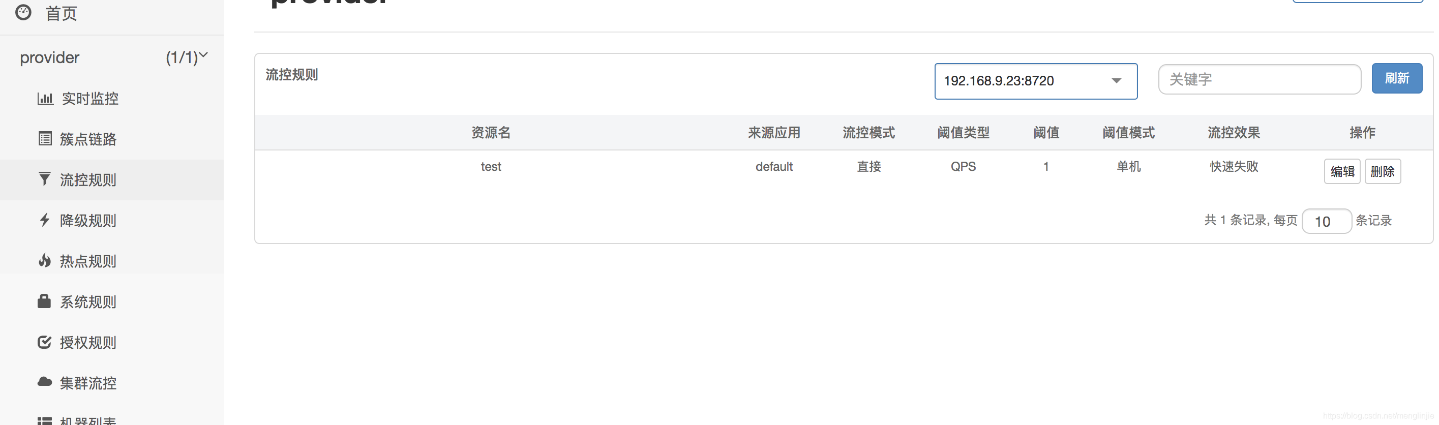 查看流控规则,发现配置中心的流控规则被加载到了provider