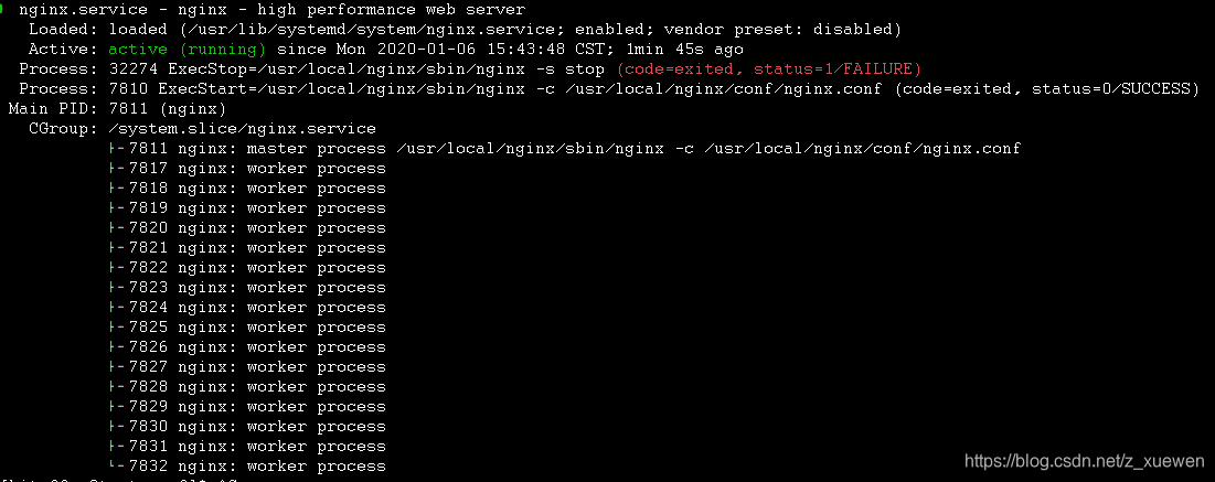 Process: 32274 ExecStop=/usr/local/nginx/sbin/nginx -s stop (code=exited, status=1/FAILURE)