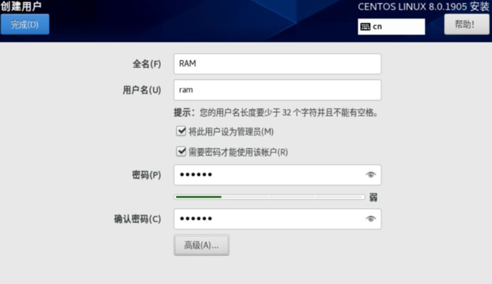使用刚才创建的用户以及相应的密码登录,按照提示进行操作。