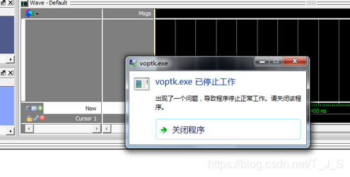 4.在使用原理图来完成项目时,调用modelsim出现voptk.exek.exe停止工作的错误。