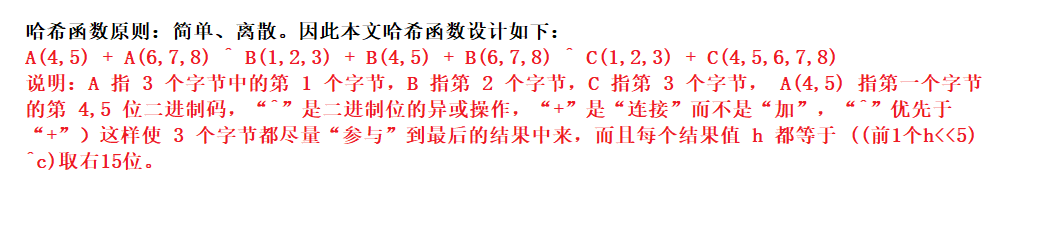 - 我们这里为了使哈希冲突尽可能的少,那么应当使每个字符都参与到哈希地址的计算当中,也就是2^24个哈希地址,而哈希表中用来存储地址的位置占两个字节,那么需要的哈希表大小就要32M。维护这么大的哈希表无疑会让程序的运行效率降低。而且对于当时设计lz77的年代来说32M是一个很大的开销,所以这里哈希函数计算哈希哈希地址的时候让让三个字节的15个比特位来参与哈希地址的计算。那么也就是2^15个地址也就是32K。