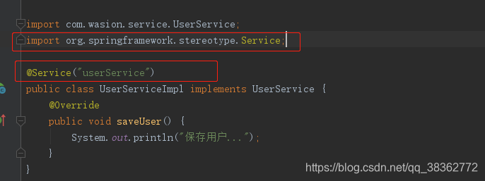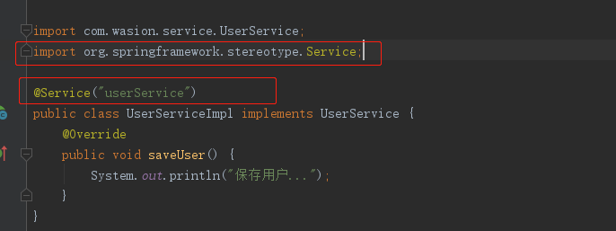 <bean id="UserServiceImpl" class="com.wasion.service.serviceImpl.UserServiceImpl" />注解方式:只需要在类上添加注解即可