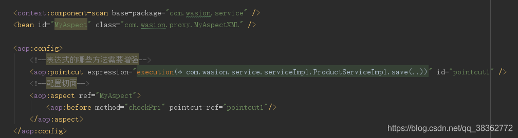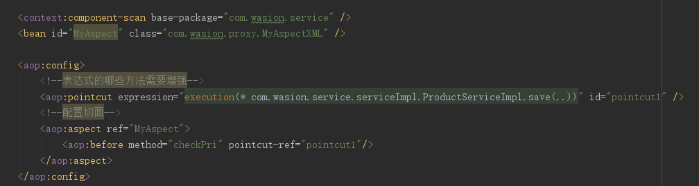 <bean id="MyAspect" class="com.wasion.proxy.MyAspectXML" />