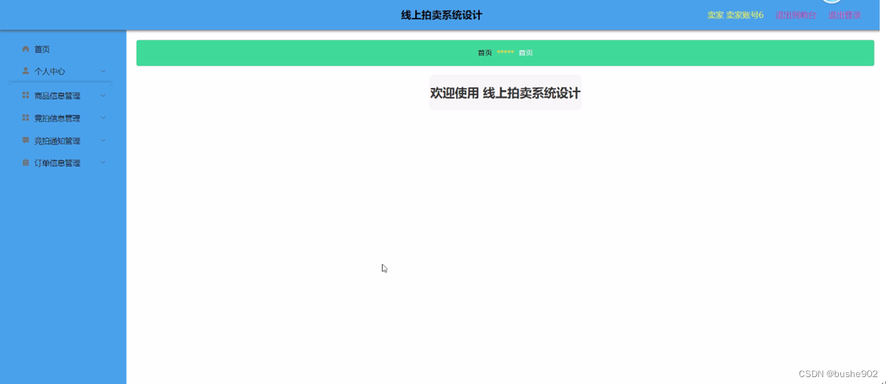 卖家通过登录进入系统可查看个人中心、商品信息管理、竞拍信息管理、竞拍通知管理、订单信息管理等内容,如图5-10所示。