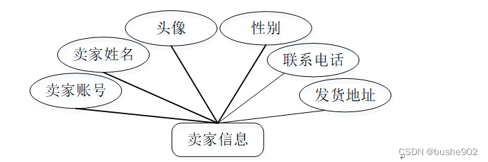 卖家信息实体包括卖家账号、卖家姓名、性别、联系电话、发货地址、头像等属性;卖家信息实体图如图4-3所示: