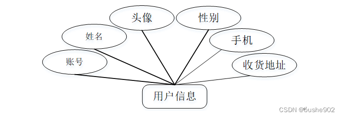 用户管理实体包括账号、姓名、头像、性别、手机、收货地址等属性。用户信息实体图如图4-2所示: