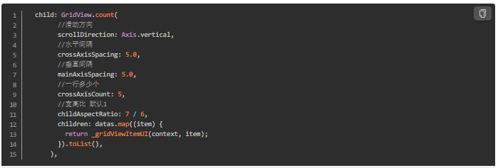 Flutter中使用GridView设置子控件宽高问题如图GridView子控件高度,刚开始在children获取控件中进行高度设置,发现并不生效。原来是通过宽高比属性childAspectRatio控制,默认宽高比1:1