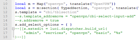 将\luci\model\cbi\openvpn.lua 下的这些函数进行注释