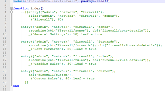 将\luci\controller\firewall.lua 下的函数进行注释,其实这个文件删除掉即可