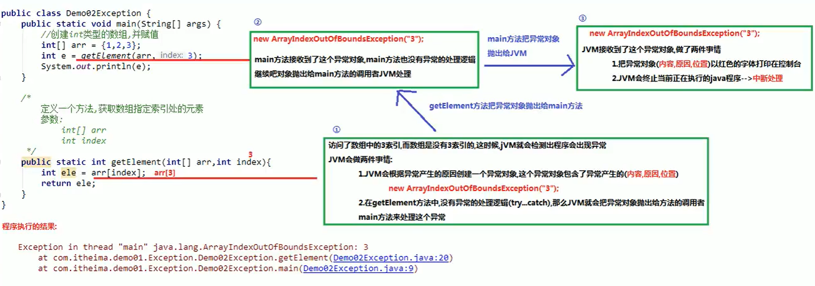 public void printStackTrace() :打印异常的详细信息。 包含了异常的类型,异常的原因,还包括异常出现的位置,在开发和调试阶段,都得使用printStackTrace。