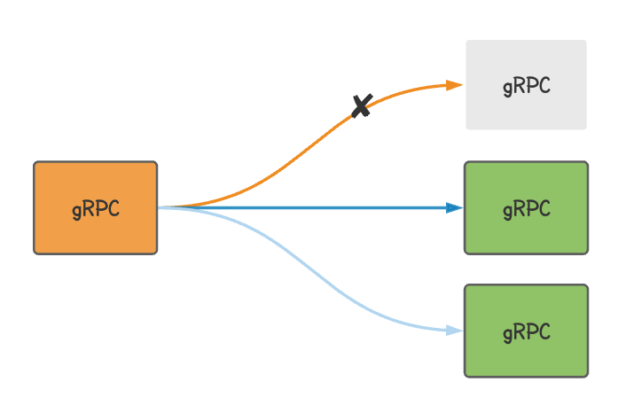 4. 当接收请求的子通道发生断开时,gRPC 会重新建立链接,然后又从新链接中选择一个子通道进行通信。