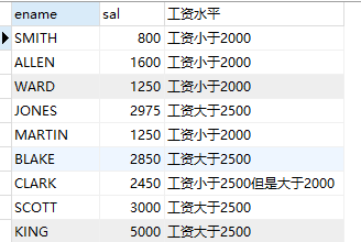 case when sal<2000 then '工资小于2000'