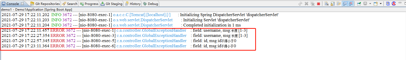 }校验失败,会直接抛出异常。这样不太友好,可以使用@ControllerAdvice处理全局异常。