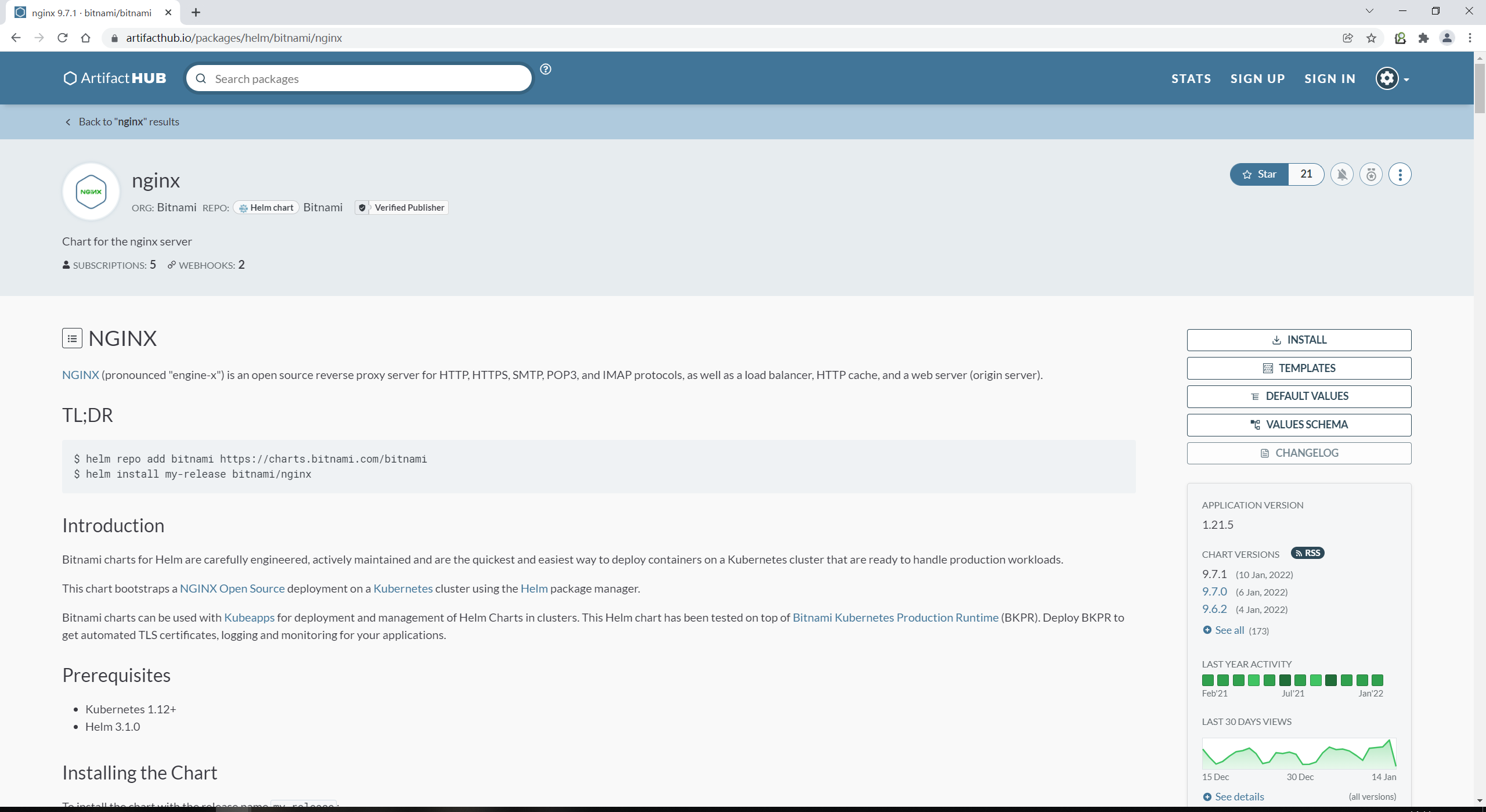 local/nginx 9.7.1 1.21.5 Chart for the nginx server