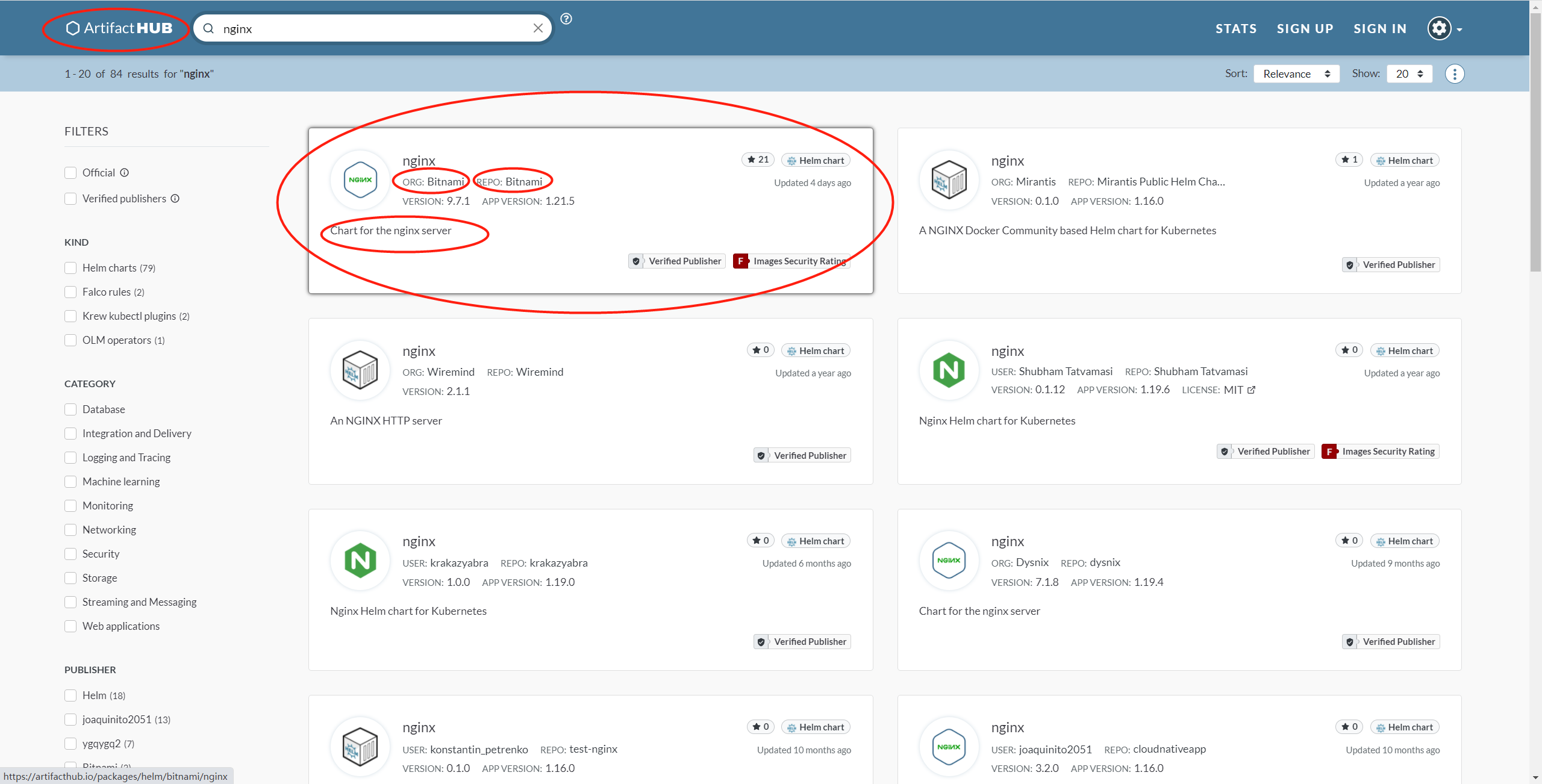 - helm search: search for charts