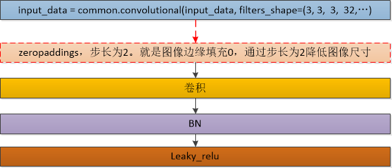 # 基本单元:zeropaddings(为true时)+卷积+BN+leaky_relu