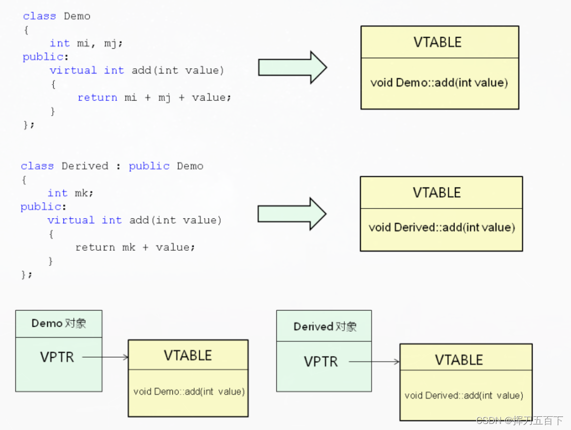 1. 在类中,用 virtual 声明一个函数时,就会在这个类中对应产生一张 虚函数表,将虚函数存放到该表中;