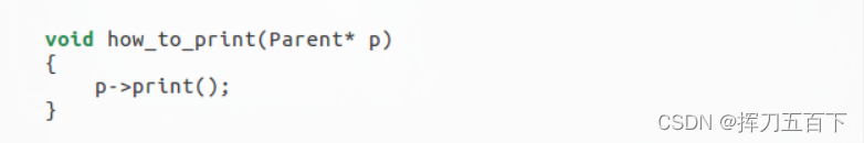 在调用这个函数时,编译器不可能知道指针究竟指向了什么。但是编译器没有理由报错,于是编译器认为最安全的做法就是调用父类中的print()函数。