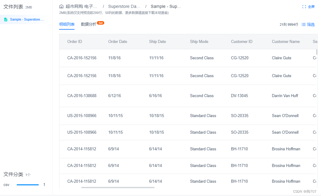 示例销售数据、订单信息、销售、客户、运输等,用于细分、客户分析、聚类等。